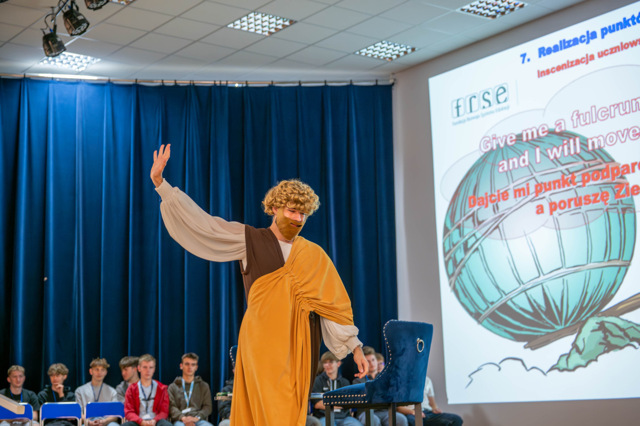 Drugi dzień seminarium rozpoczął się „giga lekcją” prowadzoną przez Eksperta EVET Mieczysława Wilka, z udziałem swoich wychowanków. „Giga lekcja” to autorska innowacja pedagogiczna z wykorzystaniem metodologii STEAM, która ma zaciekawić i zmotywować klasę do nauki przedmiotu mechanika i wytrzymałość materiałów. Na szczególną uwagę zasługuje zaangażowanie młodzieży w przygotowanie lekcji o Archimedesie w formie teleturnieju „Milionerzy”, prowadzonego przez uczniów po angielsku.