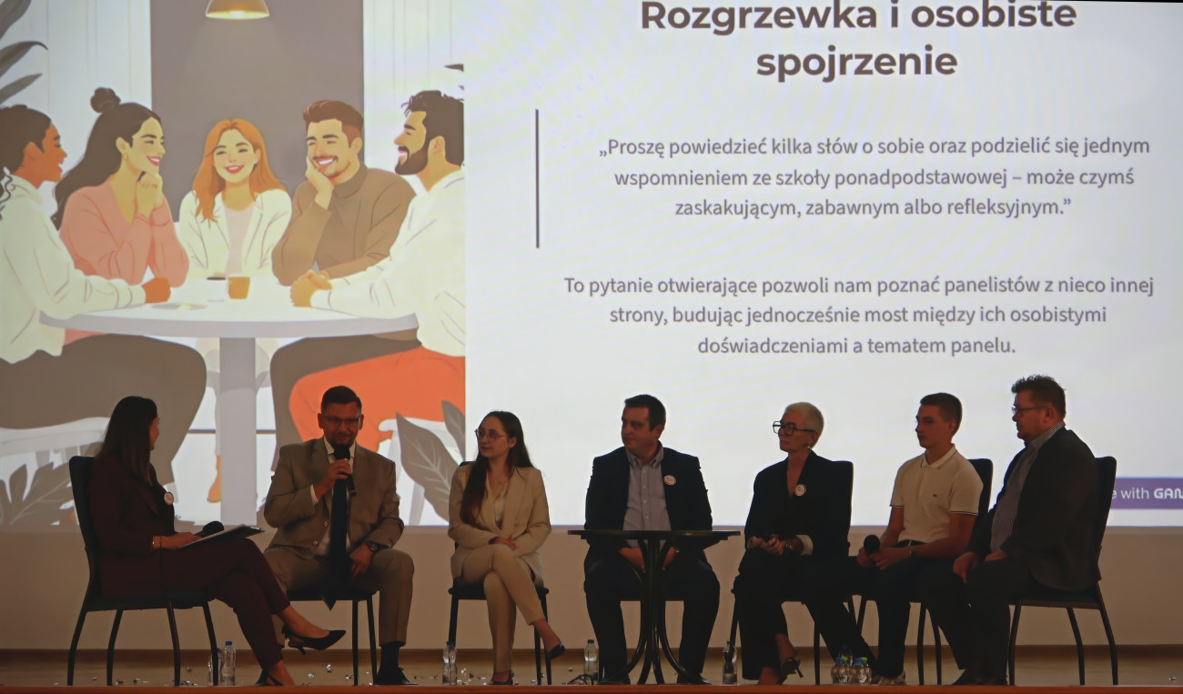 Zwieńczeniem seminarium był panel dyskusyjny „Od umiejętności do sprawczości – jak skutecznie rozwijać kompetencje zawodowe i społeczne uczniów?”, prowadzony przez Ekspertkę EVET Katarzynę Ćwiękałę, z udziałem Starosty Powiatu Mieleckiego Kazimierza Gacka, dyrektora mieleckiego oddziału ARP Wiktora Cichonia, Ekspertów EVET Doroty Wrzesińskiej i Daniela Kiełpińskiego, ucznia ZST w Mielcu Tomasza Trybuszka oraz ambasadorki staży zagranicznych Erasmus+ z sieci EuroApprentices Polska Adrianny Kopeć.