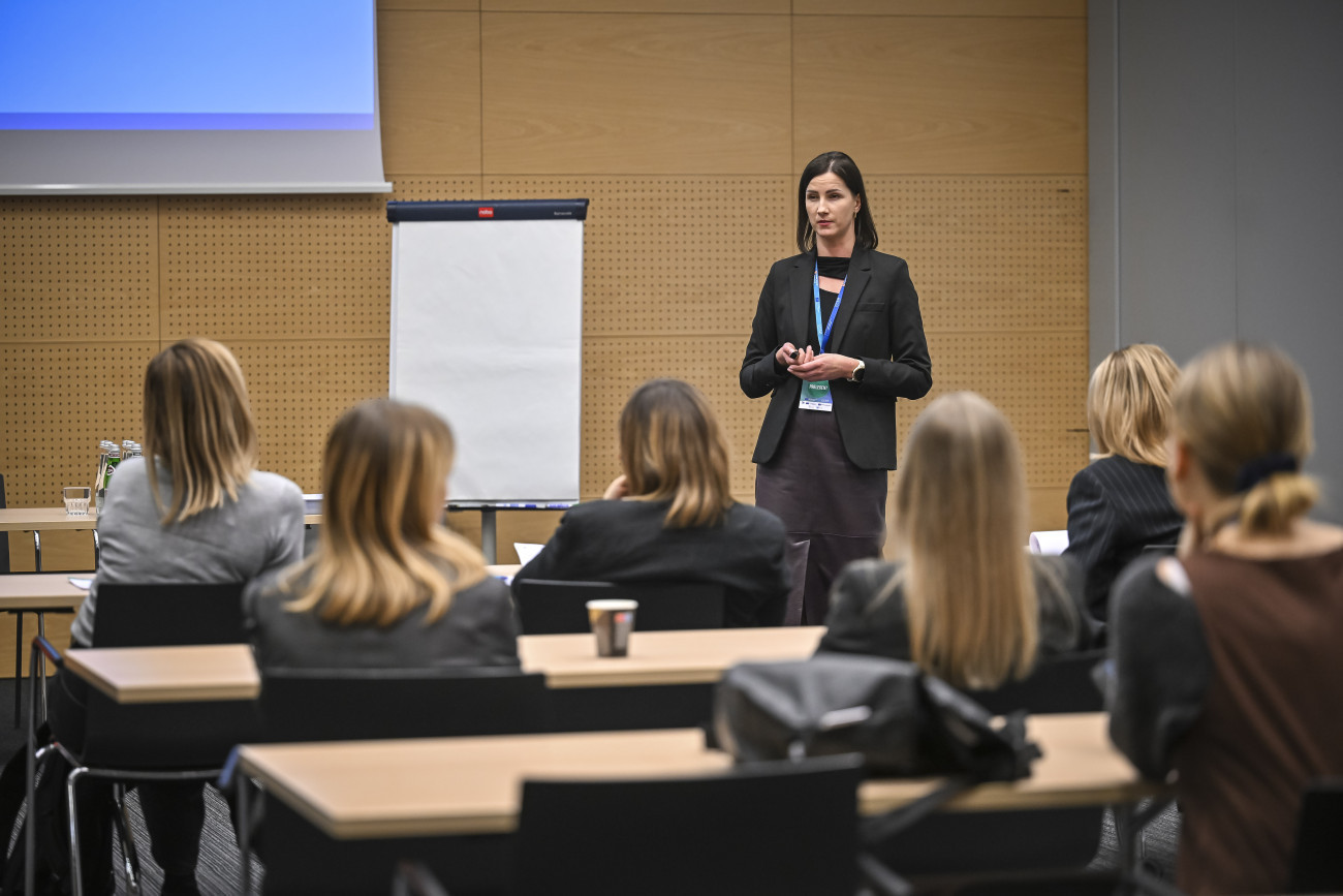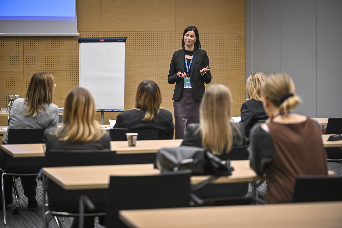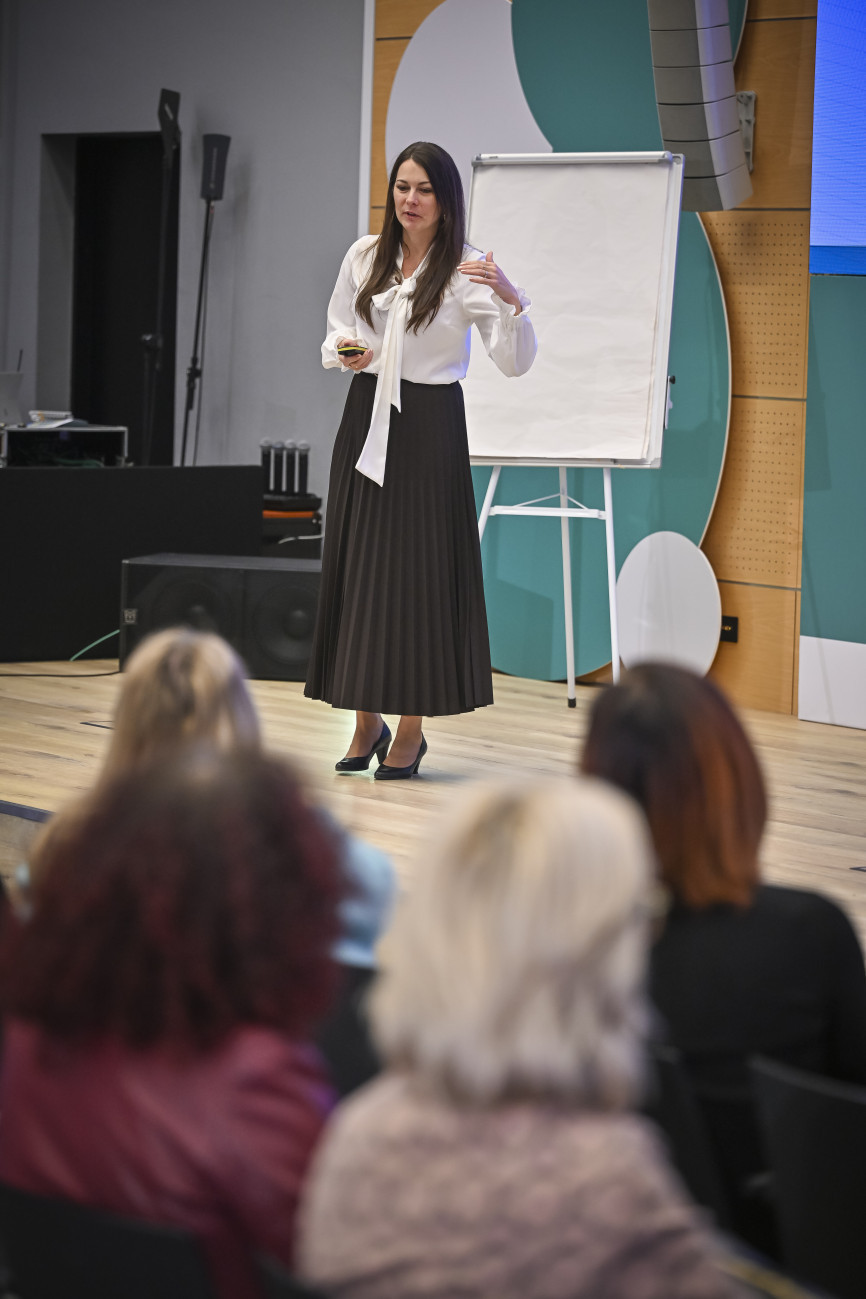 Prelegentka podkreślała, że skuteczna edukacja musi dziś odpowiadać nie tylko na bieżące potrzeby pracodawców, lecz także na długofalowe wyzwania związane z transformacją cyfrową zieloną oraz demograficzną.