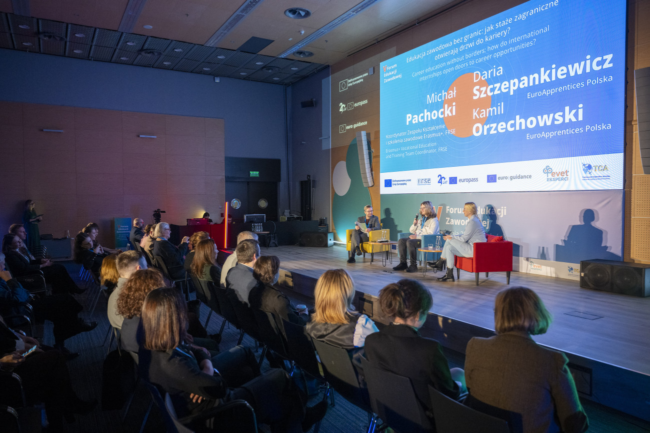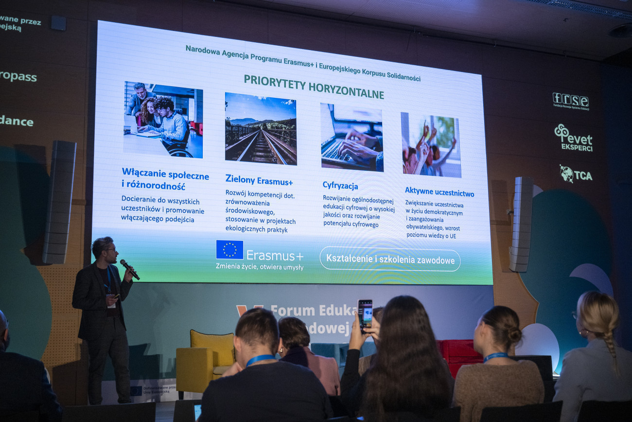 Szczególną uwagę poświęcono mobilności edukacyjnej jako realnemu narzędziu rozwoju kompetencji i zwiększania szans na rynku pracy. W ramach sesji „Edukacja zawodowa bez granic: jak staże zagraniczne otwierają drzwi do kariery?” zaprezentowano możliwości, jakie oferuje sektor Kształcenie i Szkolenia Zawodowe programu Erasmus+.