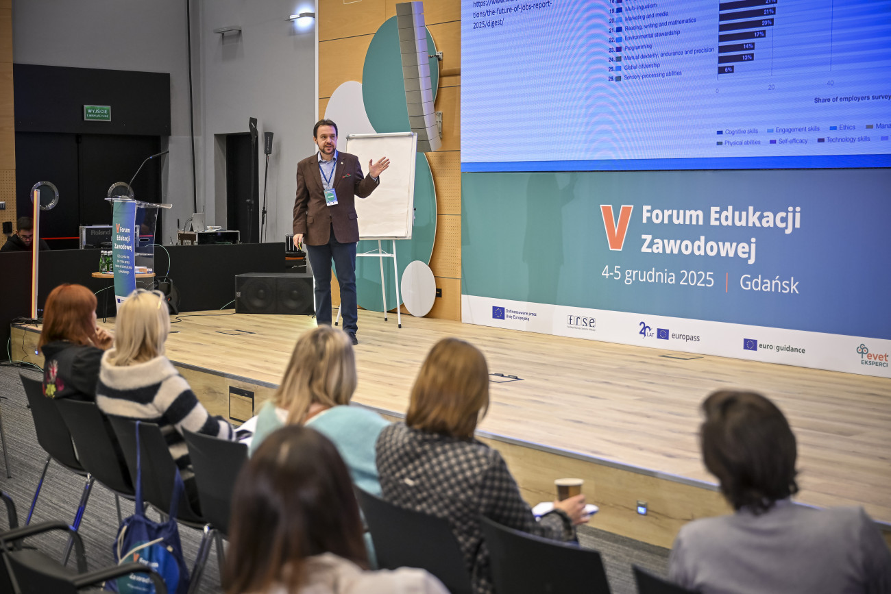Odpowiedzi na te pytania szukano podczas V Forum Edukacji Zawodowej, które odbyło się 4 - 5 grudnia 2025 r. w Gdańsku na terenie AMBEREXPO, łącząc debatę strategiczną z praktycznymi rozwiązaniami m.in dla szkół, uczelni, instytucji, pracodawców, nauczycieli, doradców zawodowych. Forum zgromadziło ekspertów, decydentów oraz praktyków edukacji oraz doradztwa zawodowego z całej Polski i Europy.